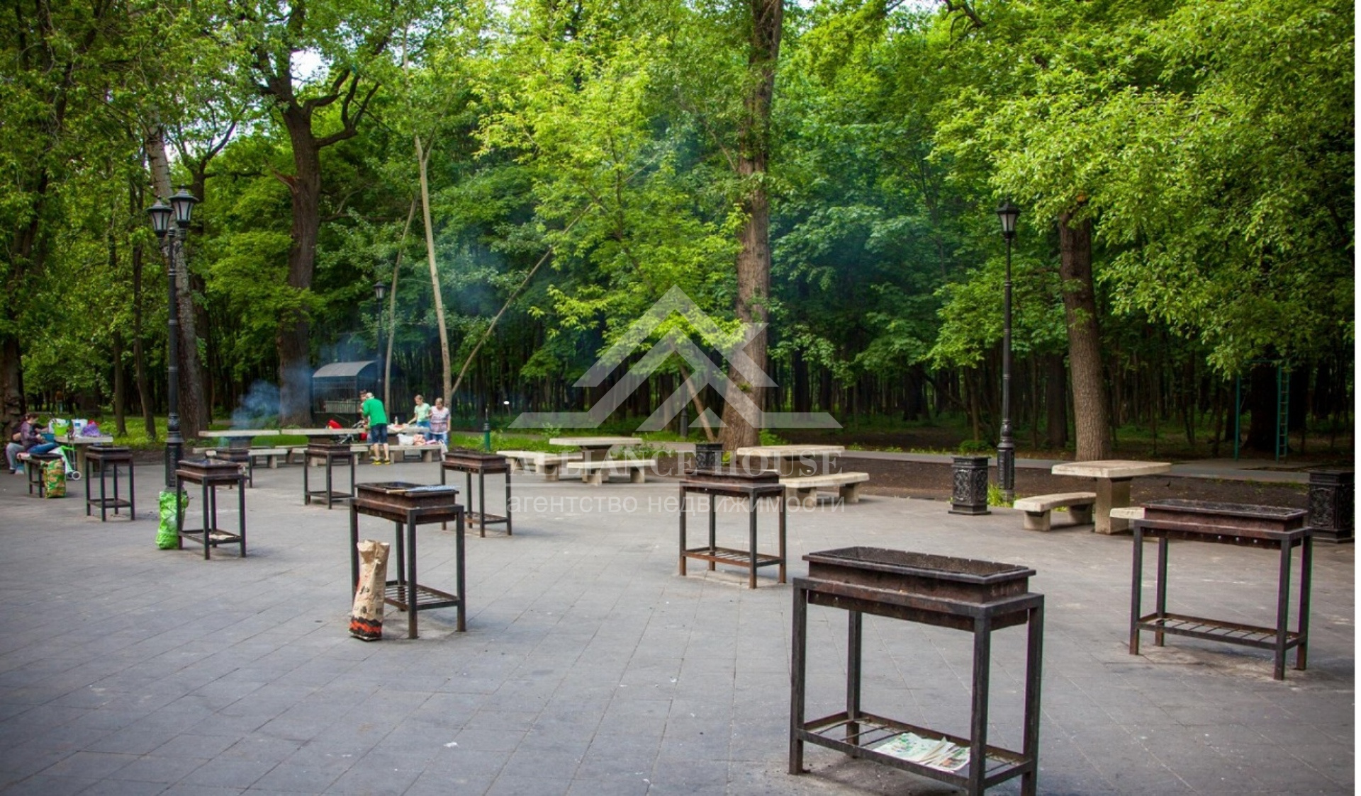 Есть отдельная зона барбекю и огромное количество детских площадок.