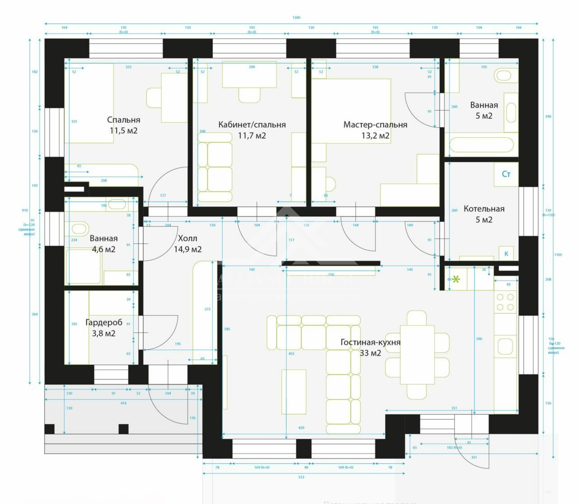 ➖Общая площадь коттеджа: 130 м²